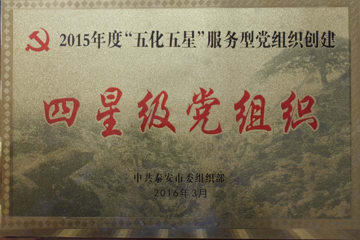 近日,集团公司党委被泰安市国资委评为“四星级党组织”荣誉称号。