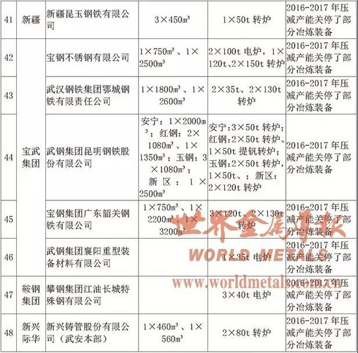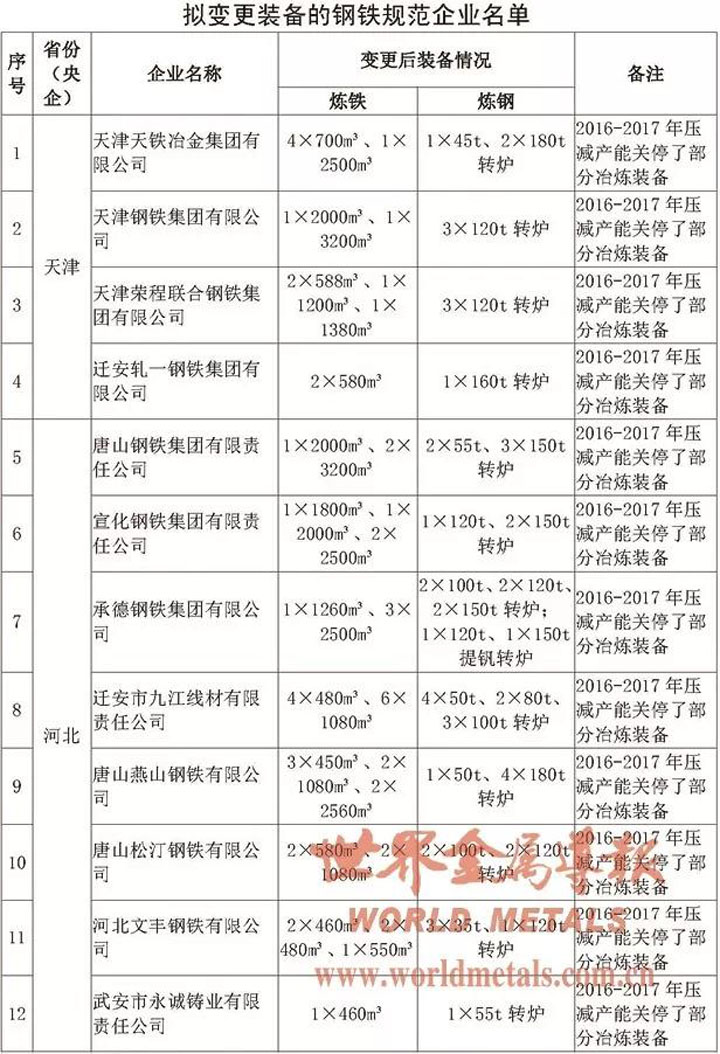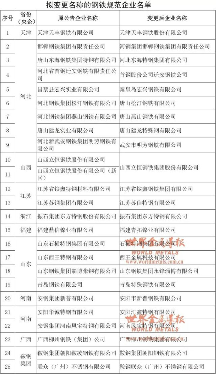 钢铁规范企业名单调整——19家被撤销,12家需整改,25家变更名称,48家变更装备!!